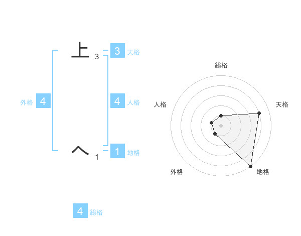 上 へさんの総格は4画の1点!