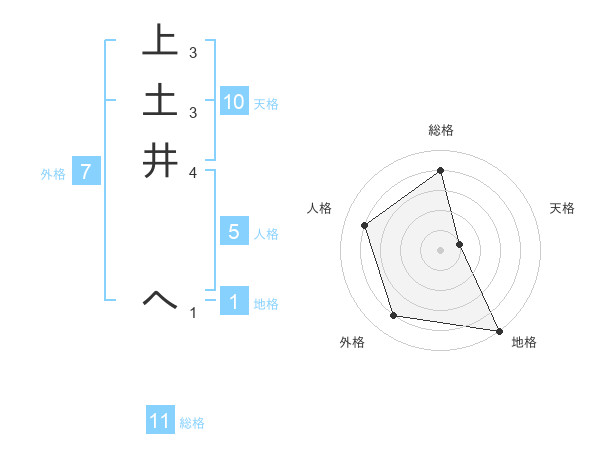 上土井 へさんの総格は11画の4点!