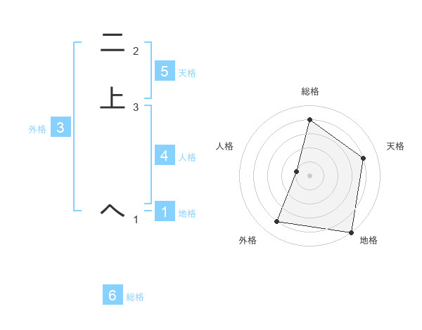 二上 へさんの総格は6画の4点!