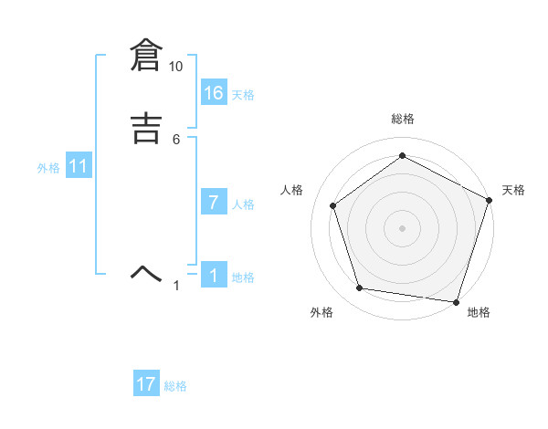 倉吉 へさんの天格は16画の5点!