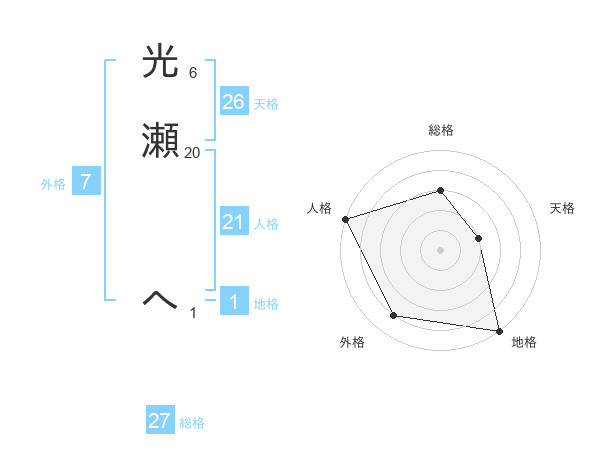 光瀬 へさんの総格は27画の3点!