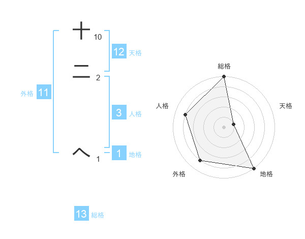 十二 へさんの地格は1画の5点!