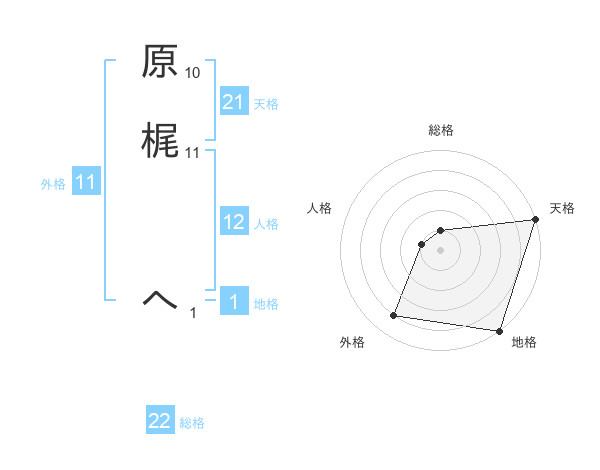 原梶 へさんの外格は11画の4点!