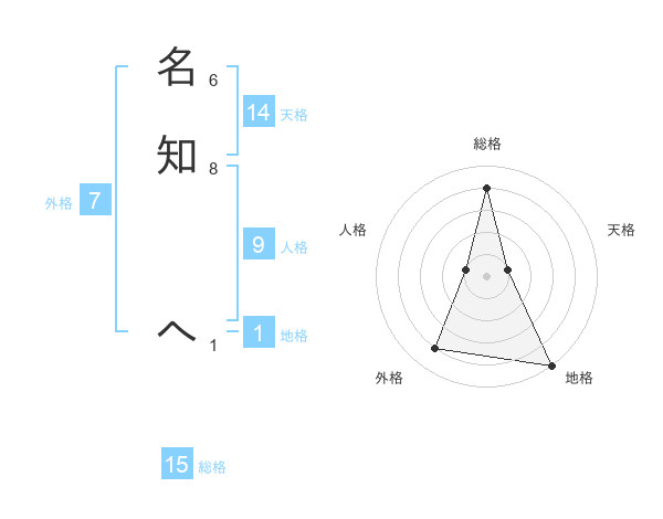 名知 へさんの総格は15画の4点!
