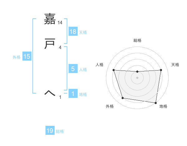 嘉戸 へさんの天格は18画の4点!