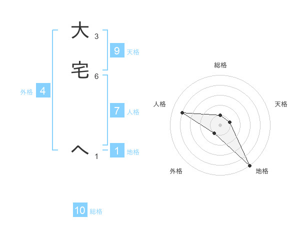 大宅 へさんの総格は10画の1点!