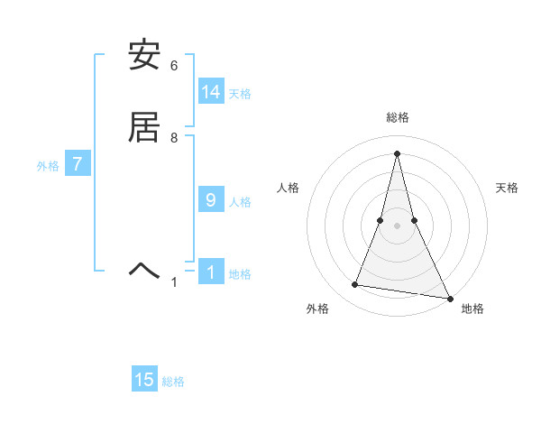 安居 へさんの総格は15画の4点!