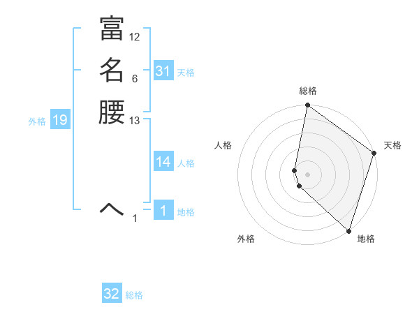 富名腰 へさんの総格は32画の5点!