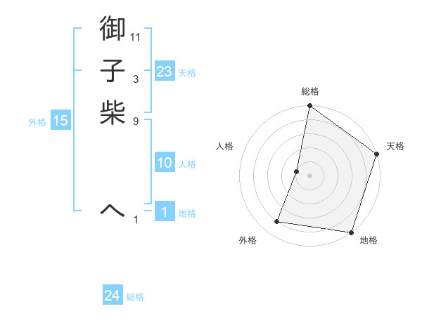 御子柴 へさんの天格は23画の5点!