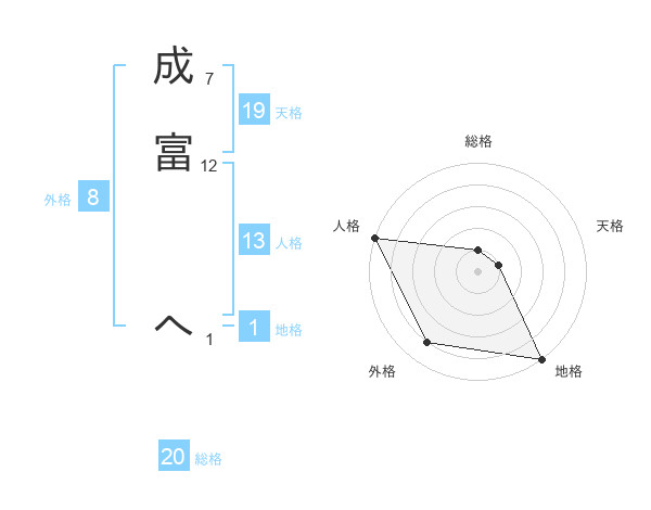 成富 へさんの総格は20画の1点!