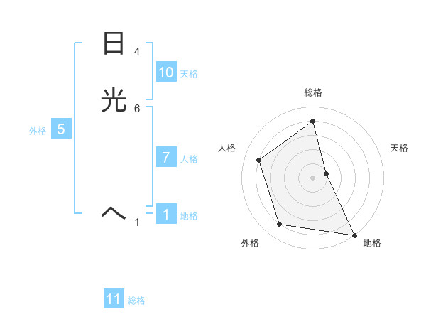 日光 へさんの総格は11画の4点!