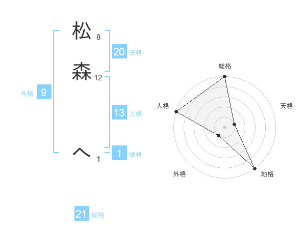 松森 へさんの総格は21画の5点!