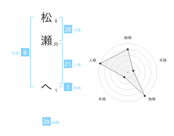 松瀬 へさんの総格は29画の4点!
