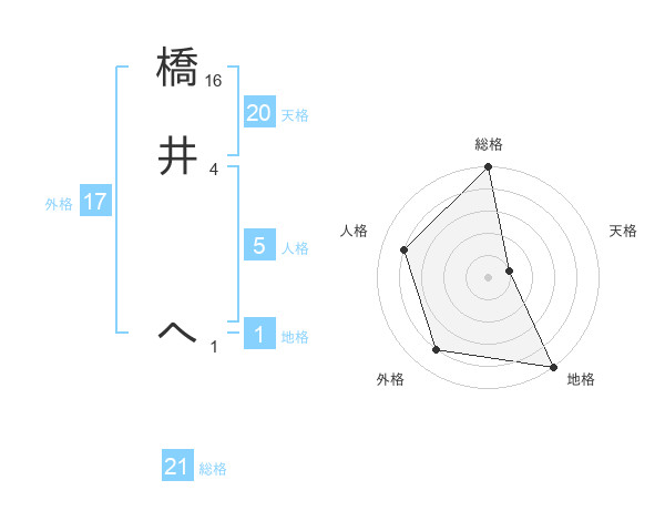 橋井 へさんの総格は21画の5点!