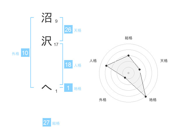 沼沢 へさんの総格は27画の3点!