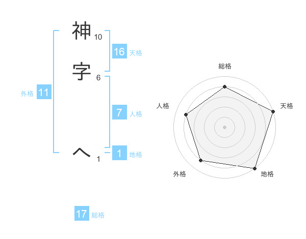 神字 へさんの総格は17画の4点!