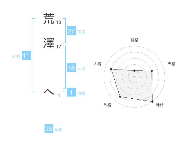 荒澤 へさんの総格は28画の1点!