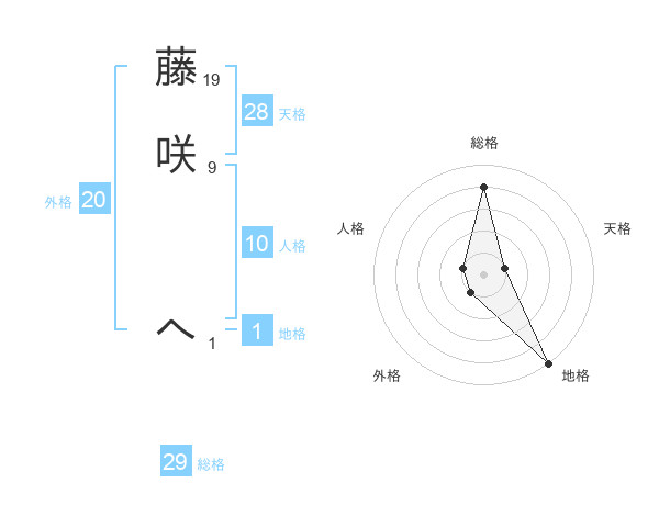 藤咲 へさんの地格は1画の5点!
