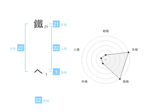 鐵 へさんの人格は22画の1点!
