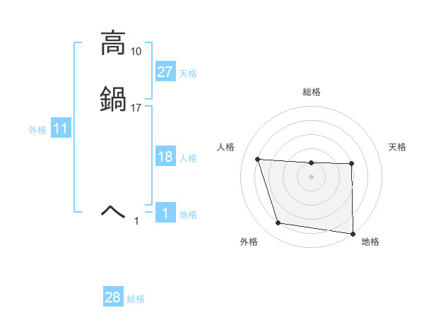 高鍋 へさんの総格は28画の1点!