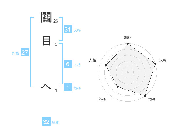 鬮目 へさんの天格は31画の5点!