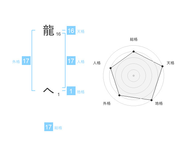 龍 へさんの総格は17画の4点!