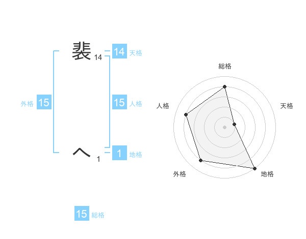 裴 へさんの外格は15画の4点