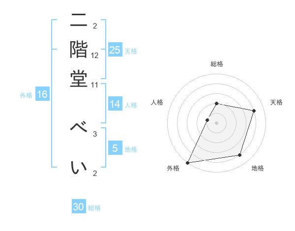 二階堂 べいさんの天格は25画の4点!