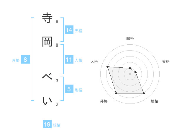 寺岡 べいさんの外格は8画の4点!