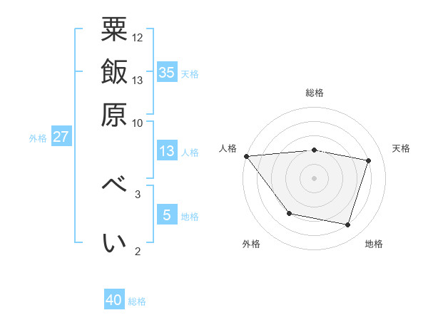 粟飯原 べいさんを姓名の画数から五運を鑑定