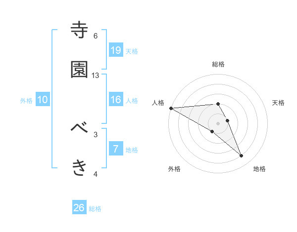 寺園 べきさんの総格は26画の2点!
