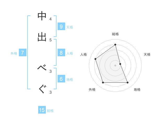 中出 べぐさんの総格は15画の4点!