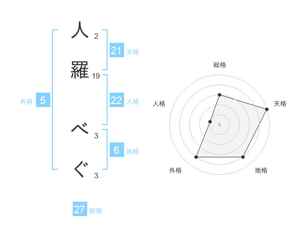 人羅 べぐさんの総格は27画の3点!
