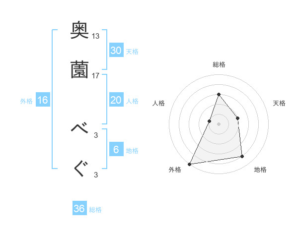 奥薗 べぐさんを姓名の画数から五運を鑑定