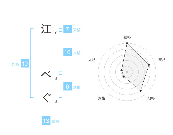 江 べぐさんの総格は13画の5点!