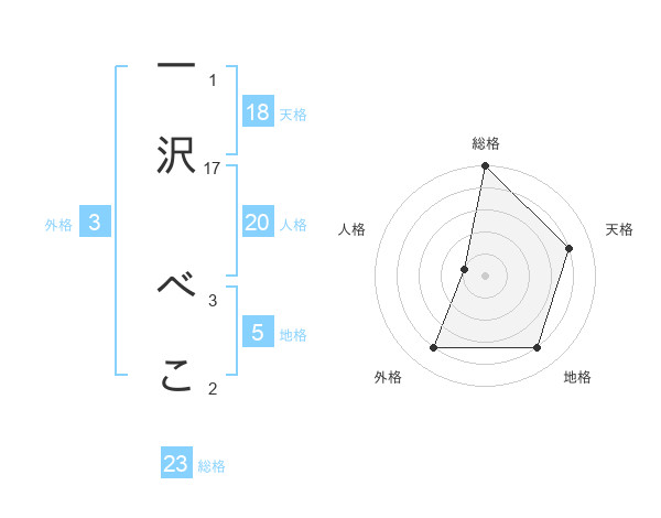 一沢 べこさんの総格は23画の5点!