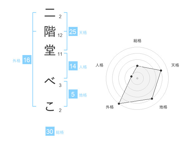 二階堂 べこさんを姓名の画数から五運を鑑定
