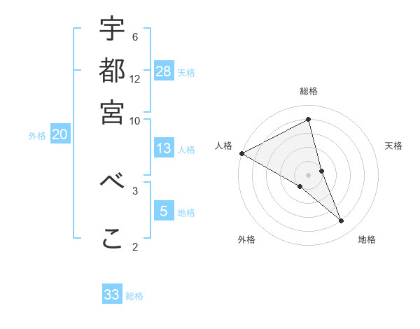 宇都宮 べこさんを姓名の画数から五運を鑑定