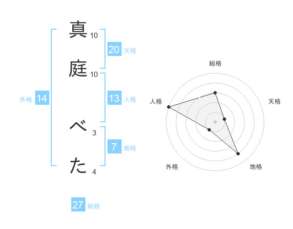 真庭 べたさんの天格は20画の1点!