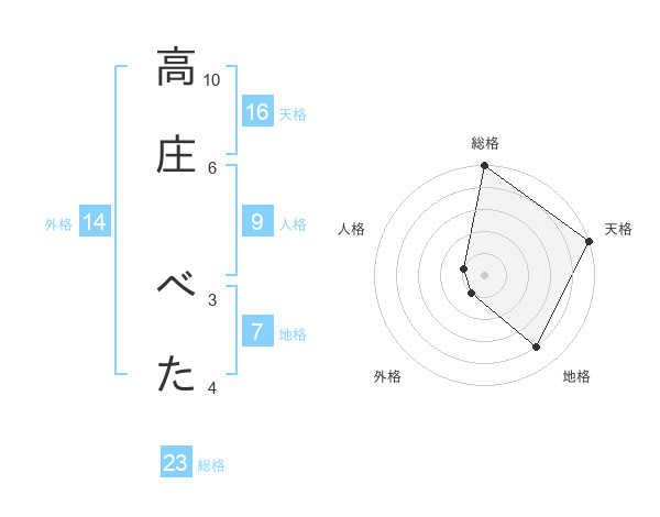 高庄 べたさんの天格は16画の5点!