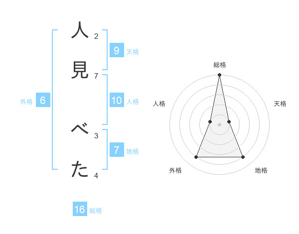 人見 べたさんの総格は16画の5点!