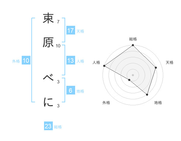 束原 べにさんの天格は17画の4点!