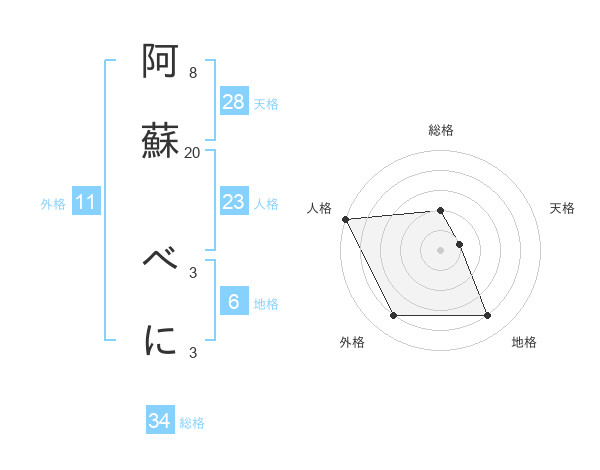 阿蘇 べにさんを姓名の画数から五運を鑑定