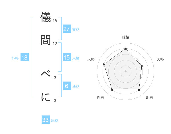 儀間 べにさんの総格は33画の4点!