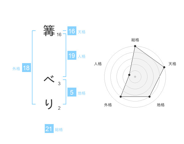 篝 べりさんの天格は16画の5点!
