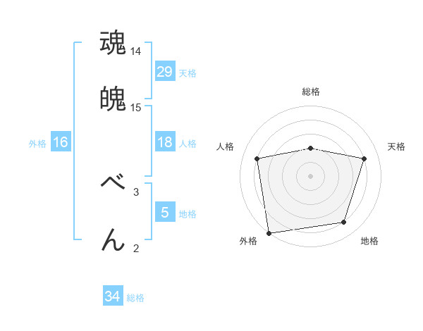 魂魄 べんさんの総格は34画の2点!