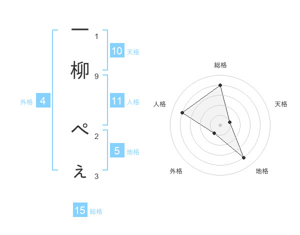 一柳 ぺぇさんを姓名の画数から五運を鑑定