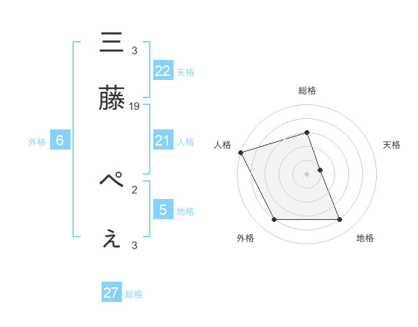 三藤 ぺぇさんの総格は27画の3点!