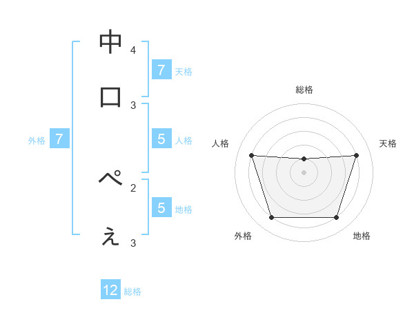 中口 ぺぇさんを姓名の画数から五運を鑑定
