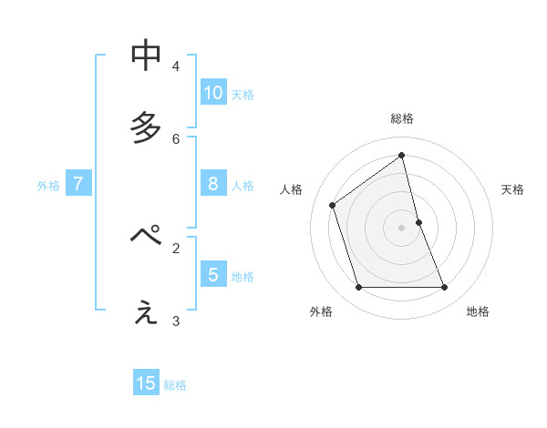 中多 ぺぇさんを姓名の画数から五運を鑑定